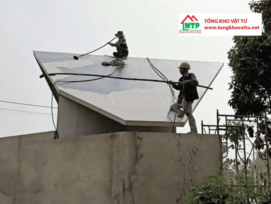 Phủ lớp sơn chống thấm hoặc màng chống thấm lên toàn bộ bề mặt mái để bảo vệ tấm khỏi nước mưa.