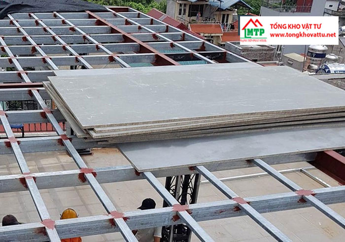 Bảng báo giá tấm cemboard đóng trần mới nhất 2025 Lắp các tấm Cemboard đặt tấm vào khung và mỗi góc của tấm phải ở trên các đà thẳng đứng