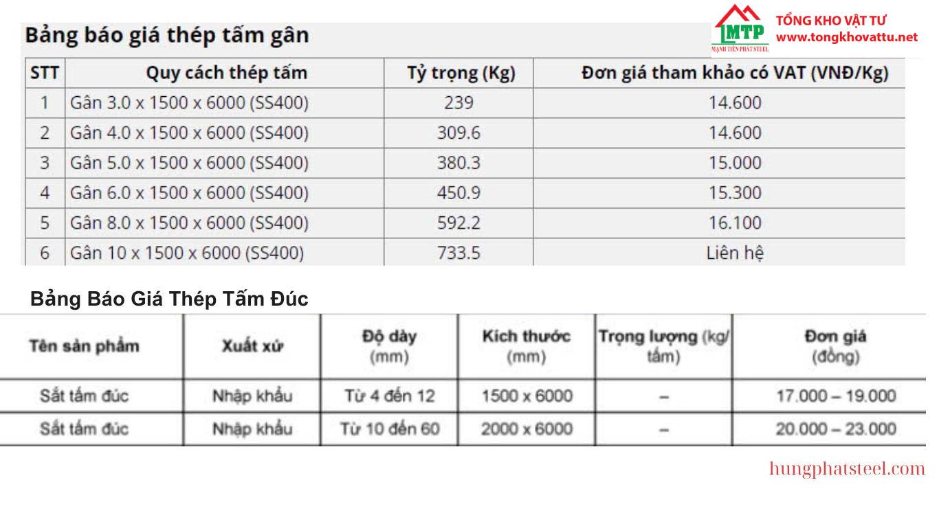 | Tấm Q235 | 50.0 x 2000 | 6/12 | 13,500 |