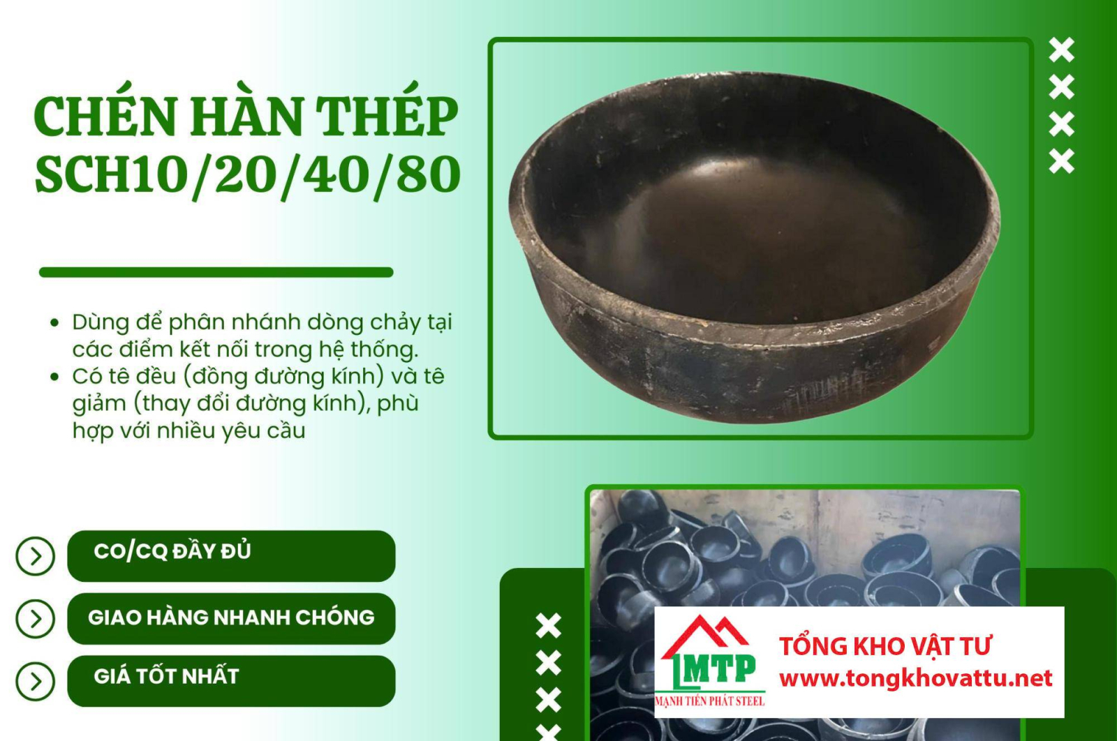 - Chén hàn (Socket Welding Fittings): Ống được lồng vào chén và hàn xung quanh (Elbow, Tee, Cap).