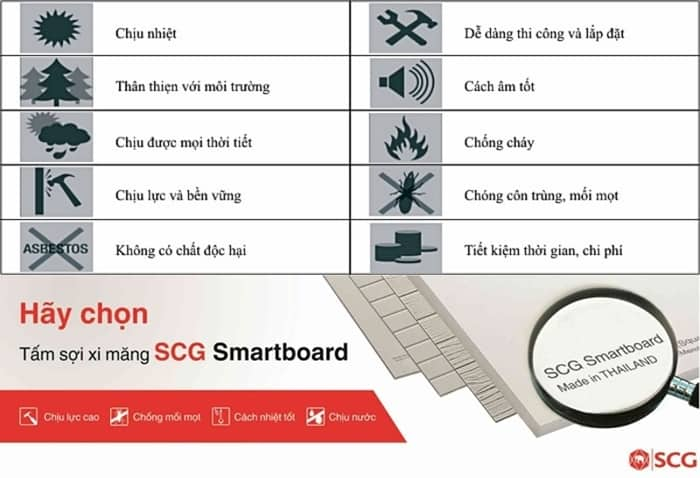 Tấm Smartboard 14mm (1m x 2m) Thái Lan – Thương Hiệu SCG hay tấm cement board, tấm xi măng sợi cellulose với nhiều đặc tính nổi bật. Đều là những từ ngữ thông dụng chỉ sản phẩm vật liệu thế hệ mới được xuất xứ từ Thái Lan.