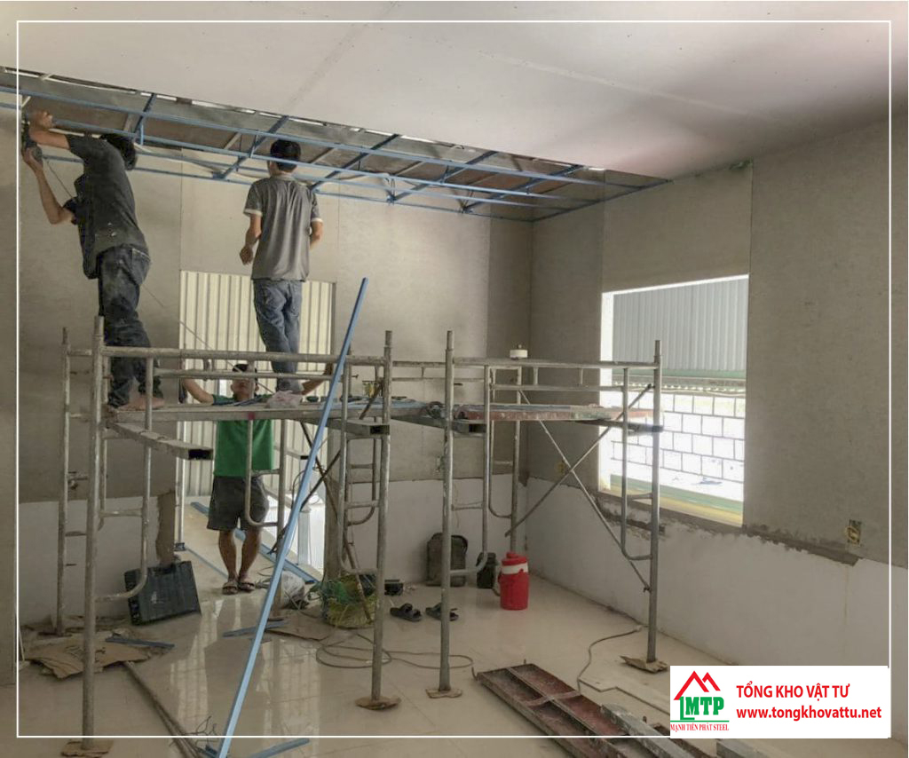 Kết hợp với khung gỗ, sắt hoặc thép mạ kẽm, tấm Smartboard tạo hệ thống trần nhẹ chịu lực tốt, chống cháy, cách âm và chống nước hiệu quả.