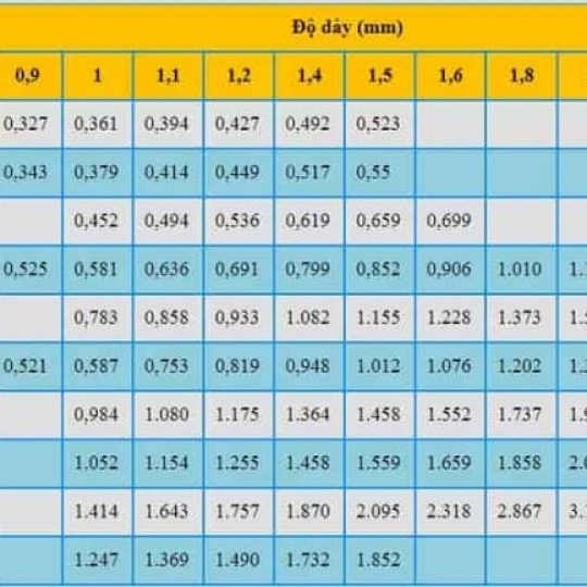 Độ dày linh hoạt: 1 ly, 1.1 ly, 1.2 ly, 1.3 ly, 1.4 ly, 1.7 ly, 1.8 ly, 2 ly...