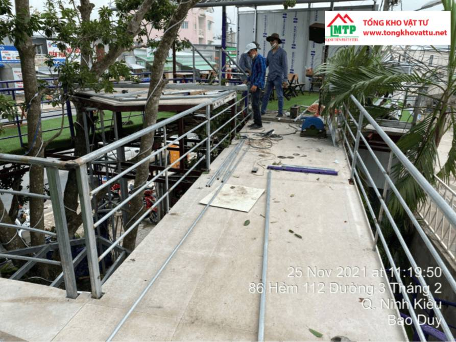 • Lắp thanh sắt hộp (thường sử dụng loại 60 x 120mm) vào các vị trí đã xác định.