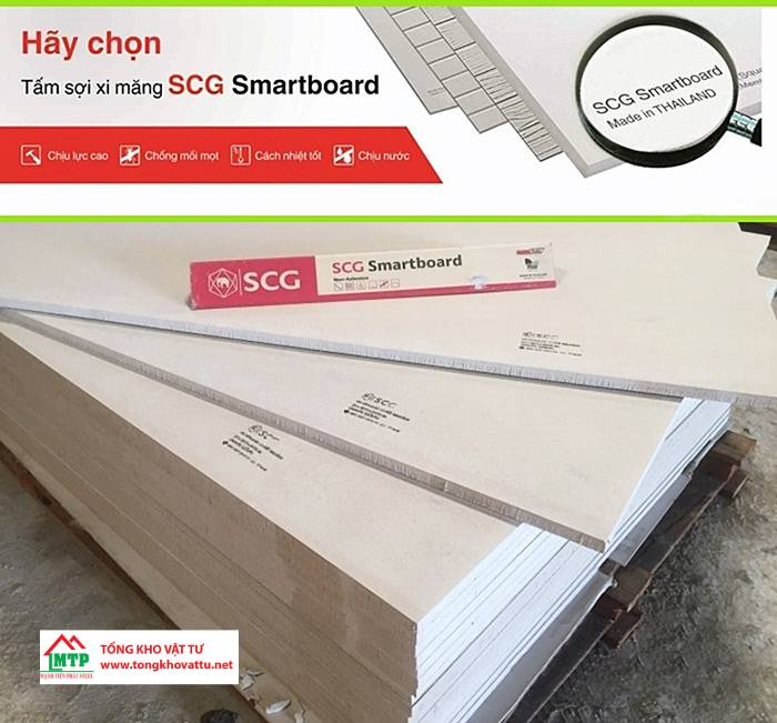 - Tấm Smartboard: Bao gồm 60% xi măng Portland, 30% sợi Cellulose tinh chế, 10% cát oxit silic cùng các chất phụ gia khác.